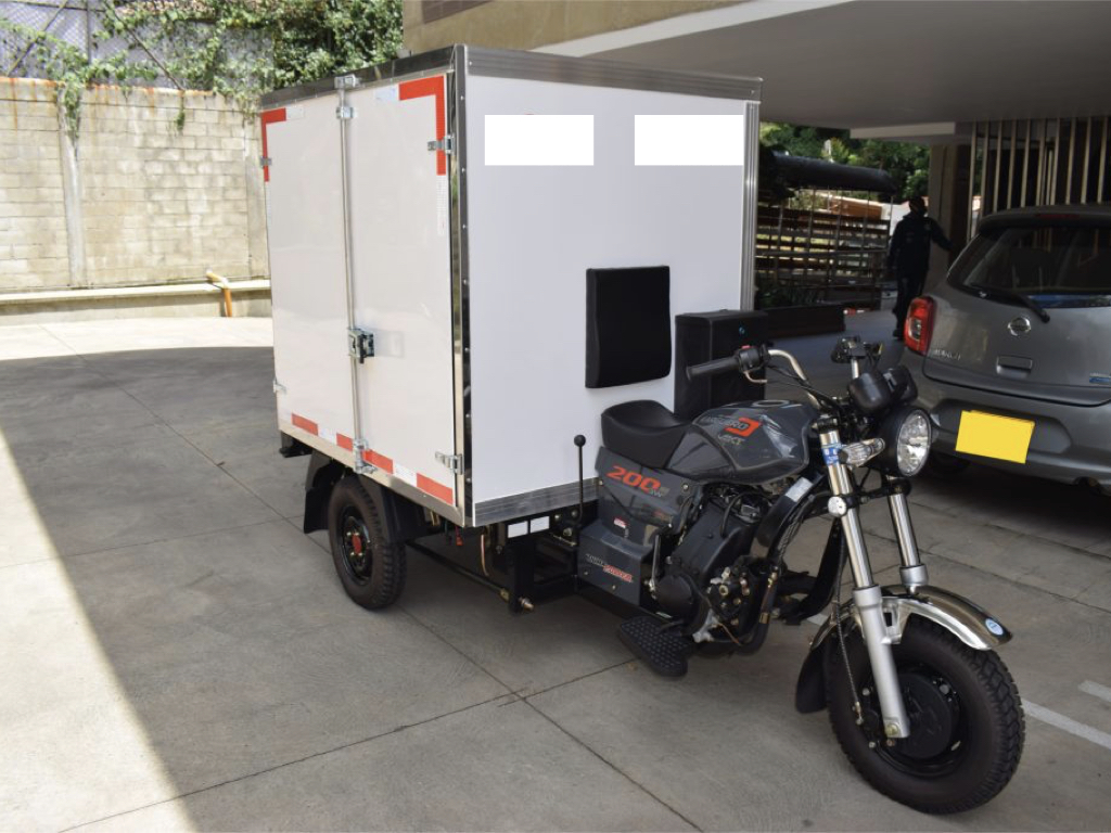 Nuestra tecnología patentada brinda una opción confiable y de bajo costo de mantenimiento para la distribución de alimentos en Furgones refrigerados para motocicleta, haciendo mas versátil, económica y seguro el transporte de alimentos que necesitan mantenerse refrigerados. Nuestro furgón posee la capacidad de refrigeración de 450Kg de producto, para conservar alimentos entre 2ºC a 16ºC durante 8 horas. Nuestra tecnología de enfriamiento NO utiliza energía eléctrica en el furgón, lo que hace que el sistema electrico de la motocicleta NO se afecte con la operación del furgón refrigerado.